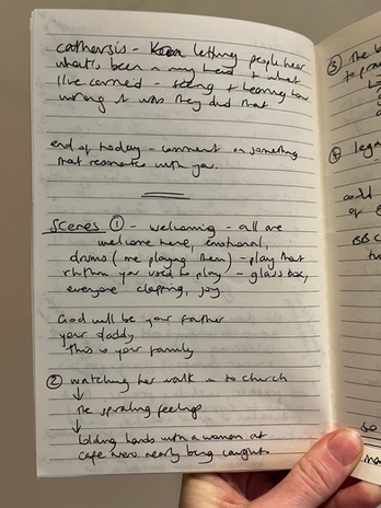 I began doing some research in to the impact of conversion practices - a term used by UK mental health charity Mind in their report on the impact this practice has on the LGBTQ+ Community. (Mind, 2022). It was very clear that the research shows the devastating impact this has on someone's mental health (Fjelstrom, 2013) It is a dangerous practice that has very real consequences. (Human Rights Campaign, No Date). I rewatched a documentary entitled Pray Away (2021), which shows scenes similar to those I experienced in my Pentecostal church - people lifting their hands in worship. For my soundscape I wanted to shape the piece like a sermon; songs, bible readings and preaching, songs, and recreated this environment. I started off by layering my vocals, which represented the literal sound of the community coming together to sing at the start of a service. I wanted this section to sound inviting, much like the initial experience I had in the church. I used a particular drum beat, one that I had learned being part of the worship team. I used both my vocals and the drums as a motif throughout the soundscape and would manipulate them sonically. I wrote up a sermon you might hear at church which was read by my friend who agreed to act as the pastor for my soundscape, and then I read a bible verse (Holy Bible New International Version, Luke 15: 3-7). When i'm reading the bible verse, I used an undulating reverb to highlight the whispers of those in the church gossiping about me being gay. The pastor comes in with phrases like "this is a safe space", and I repeat them in the soundscape to show the way I believed these words. The piece hits a crescendo, an almost unbearable listen when the pastor shouts 'being gay is wrong' - something that was said once or twice during that sermon, but words that have reverberated in my head for 10 years. I wanted to use the drums I created earlier and create a cocophany of sound. I was inspired by a TikTok video I came across (Akramf88, 2023), where the drummer showed the phase that happens when you play the same beat just one bpm apart. For me, I could represent the journey from hearing the welcoming words - 'you are welcome here...' to 'you are welcome here if...' to 'you are not welcome if you are gay'. It feels like being pulled apart.