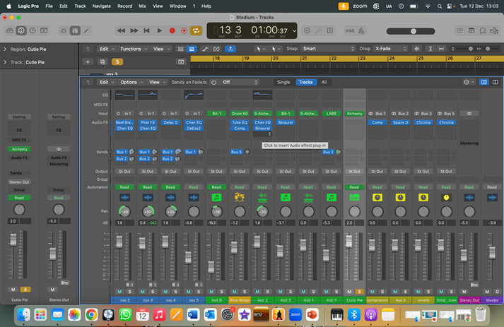 For me, this soundscape was really exciting to create! I learned how to use imaging for the first time so that I could carefully place audio instead of just panning it, and also learned how to bus effects - until now I had always just put plug-ins on to the individual channel. I developed skills in granular synthesis where I've been able to manipulate sounds and create new instruments using a sampler. (Brown, 2019) I also learned about stretching audio samples as well as reversing them, and found out the importance of placing a slightly different effect on similar channels so that it doesn't sound too static. (2007, pp. 72-107)